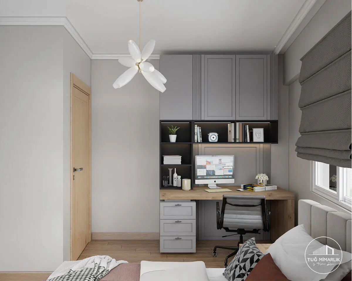 Her genç odasında aynı yaklaşımı tekrarlamak yerine bu projede mekânın ölçüsü, kullanım biçimi ve kullanıcı yaş grubuna göre daha özel bir çözüm geliştirildi. Buradaki hedef yalnızca yatağı, masayı ve dolabı aynı odaya sığdırmak değildi; bunları birbiriyle uyumlu ve rahat kullanılabilir hale getirmekti. Tam da bu nedenle renk seçimi sakin tutuldu, mobilya hatları gereksiz hareketlerden arındırıldı ve aydınlatma tek merkezli ama etkili bir şekilde çözüldü. Pencere önündeki doğal ışık masa kullanımını desteklerken, depolama birimleri duvar boyunca toparlanarak orta alanın daha açık kalması sağlandı. Sonuçta ortaya hem öğrencilik dönemine hem de ileri yaş genç kullanıcı profiline uyabilecek, daha uzun ömürlü bir oda çıktı. Bu tip çözümler, özellikle şehir yaşamında sınırlı ölçüler içinde nitelikli sonuç isteyen aileler için daha doğru bir yatırımdır. Proje, yalnızca görsel anlamda değil günlük kullanım açısından da güven veren bir iç mimari yaklaşım sunuyor. Daha fazla örnek görmek için projeler sayfasını, hızlı teklif almak için ise iletisim sayfasını ziyaret edebilirsiniz.