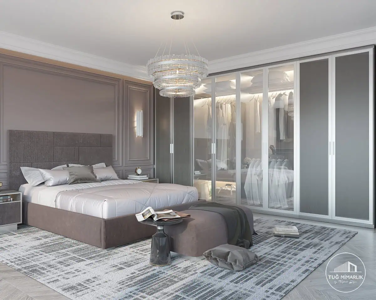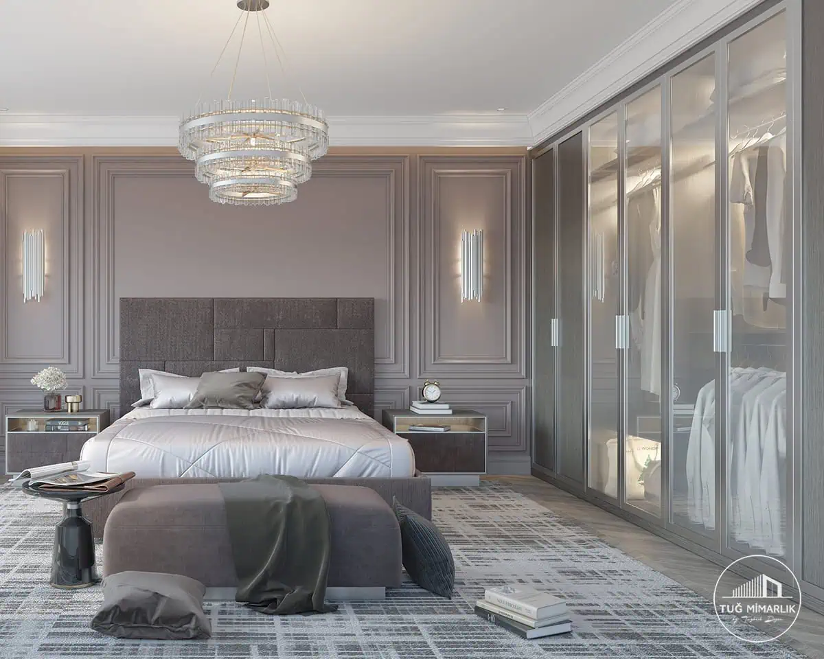 Başlık tasarımı, gardırop kalitesi, aydınlatma, duvar yüzeyi ve renk geçişleri en belirleyici unsurlardır. Tek tek pahalı ürünlerden çok, birbiriyle uyumlu kararlar daha güçlü sonuç verir. Bu projede duvar paneli ve avize seçimi birlikte değerlendirilerek bu etki sağlandı. Daha fazla örnek için yatak odası projeleri sayfamıza bakabilirsiniz.