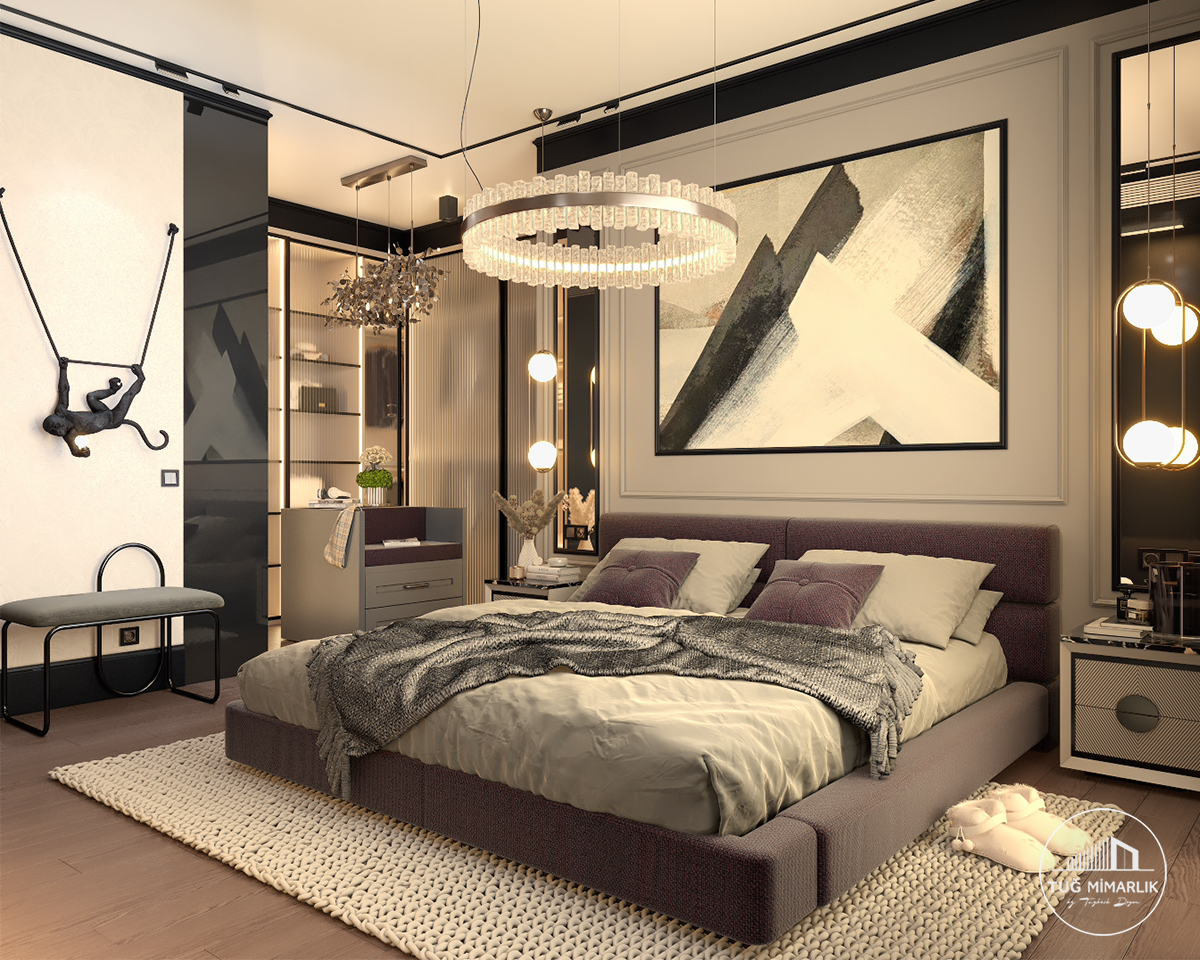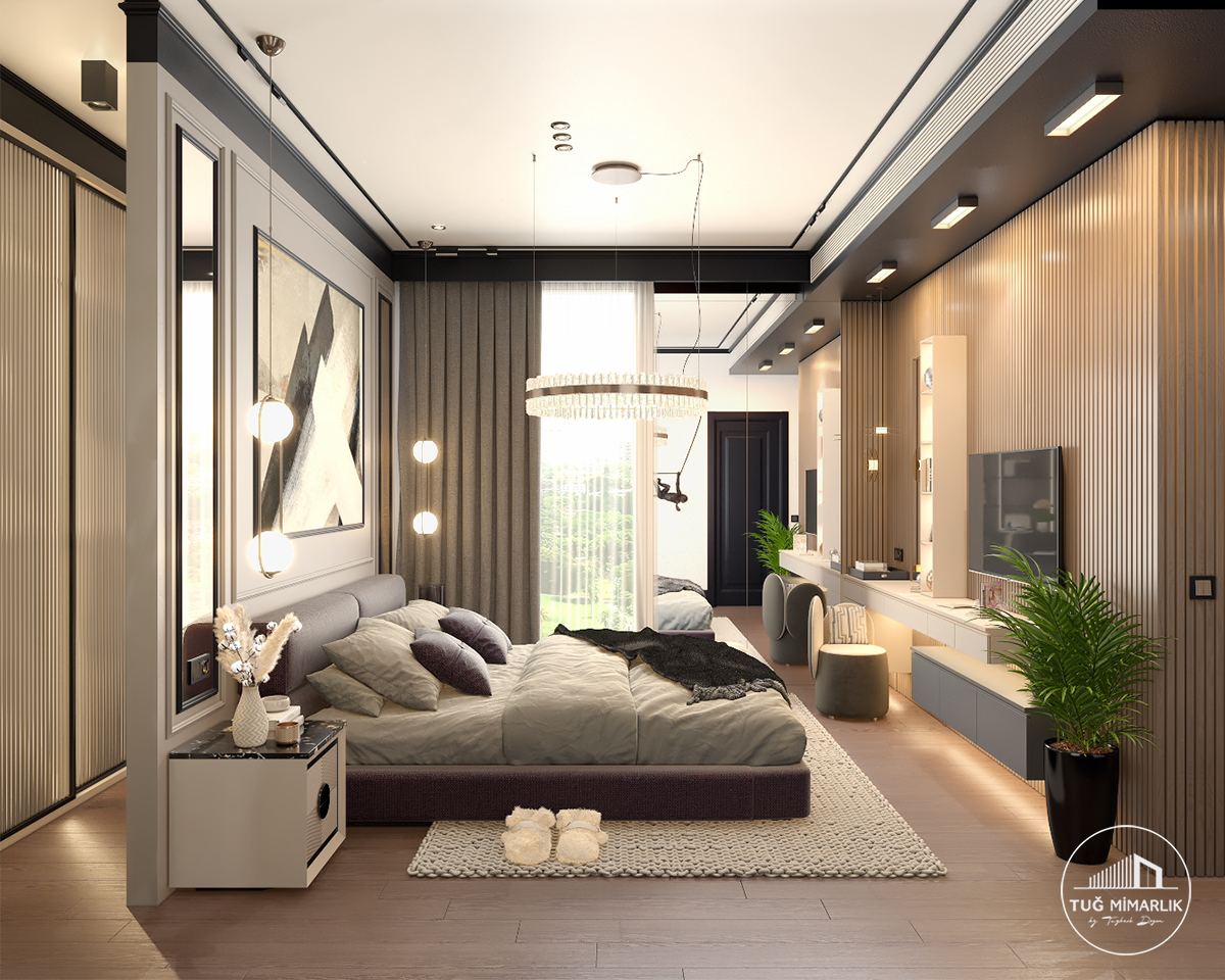 En çok fark yaratan unsur, malzeme kalitesi ile aydınlatmanın birlikte doğru kullanılmasıdır. Bu projede lüks yatak odası tasarımı etkisi, geniş yerleşim ve seçilmiş aydınlatmalarla güçlendirildi.
