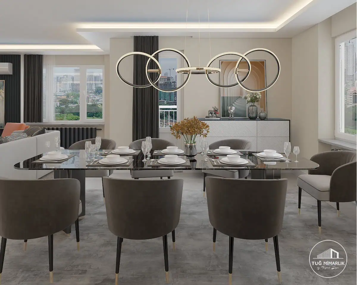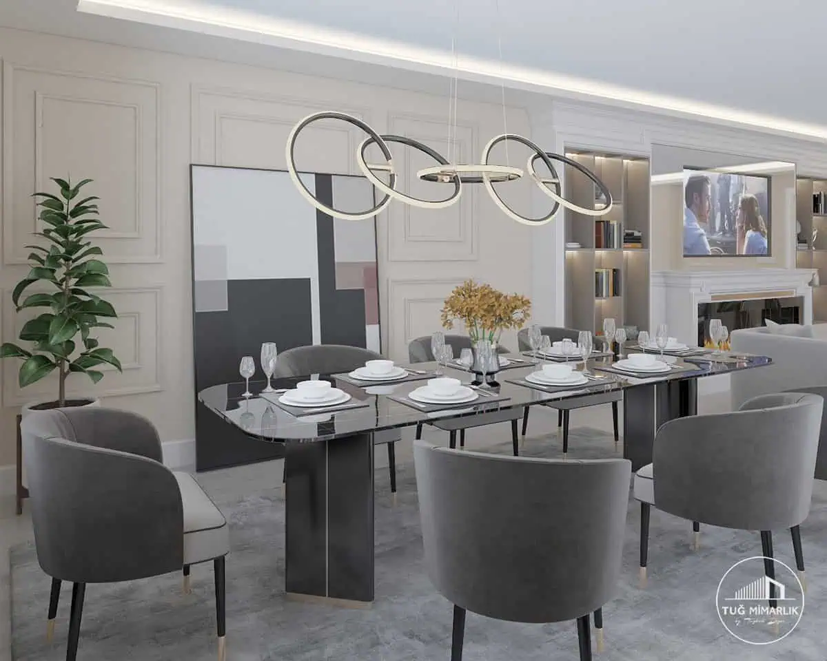 Bakırköy, Florya ve Şenlikköy çevresinde şömineli, büyük oturma alanlı, yemek bölümü güçlü ve aydınlatma dili dikkatle çözülmüş bir salon planlıyorsanız; projenize uygun yaklaşım ve hızlı teklif için bizimle iletişime geçebilirsiniz.