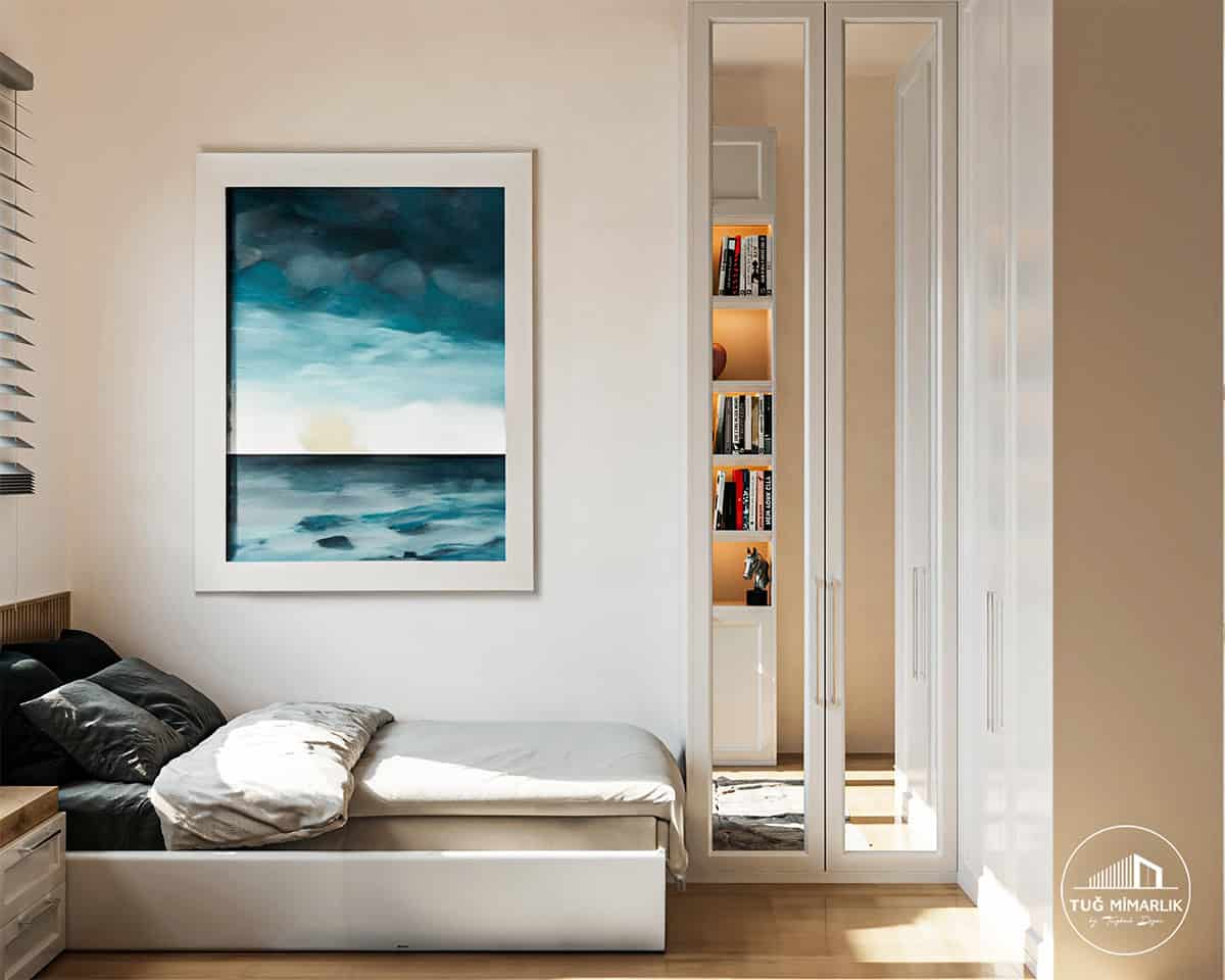 Mesa Orman’da tasarladığımız bu genç odası tasarımı, çalışma alanı ile depolamayı tek çizgide birleştirerek ferah ve düzenli bir atmosfer kurar. Benzer çözümler için Genç Odası Projeleri sayfamızı inceleyebilirsiniz.